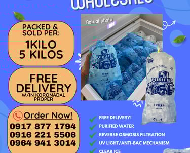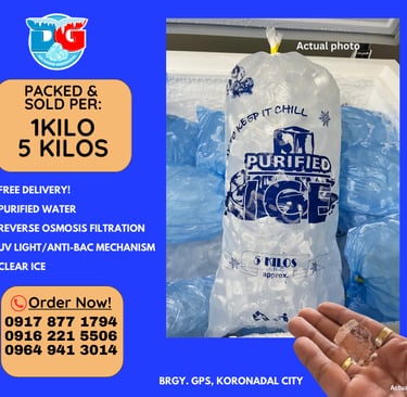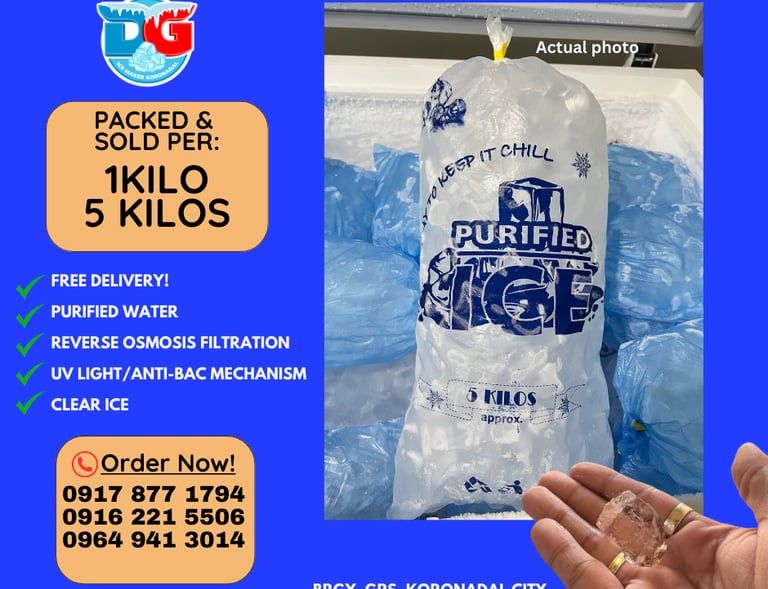 Supplying high-quality purified ice cubes for beverages and food preservation in Koronadal City, South Cotabato.